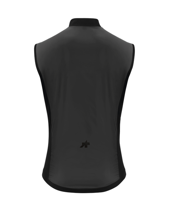 Een winddicht, waterafstotend vest voor fietsen in koele, natte omstandigheden, vernieuwd met een compacter opvouwbare hoofdstof, volledige bescherming op het rugpaneel en een rits met dubbele schuiver.